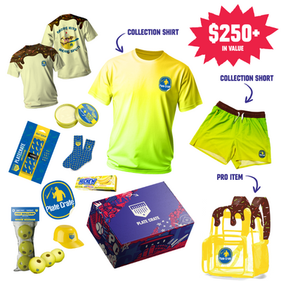 Peel into performance and fun with the Plate CrateBanana Crate MVP – the most a-peel-ing crate Plate Crate has ever delivered. This exclusive drop is packed with the Banana Gradient Performance Shirt & Banana Gradient Shorts from theBanana Collection and Banana Plate Crate Pro that includes pro-item Clear Banana Slit Backpack, top-tier baseball gear, flavorful surprises, and banana-powered style that will turn heads at the field, gym, or anywhere you go.