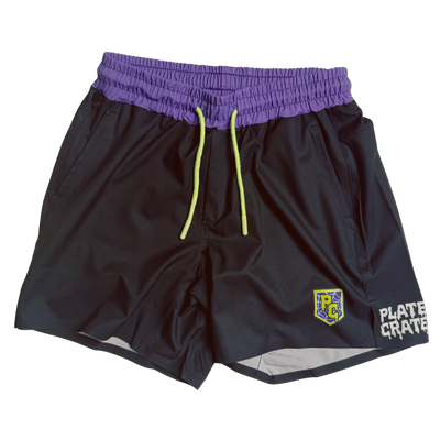 Suit up for the season with the Monster Shield Shorts from Plate Crate’s October 2025 Monster Smash Collection. Featuring the bold Monster Shield logo and a sleek black-and-purple design, these shorts combine comfort, performance, and spooky-season style.