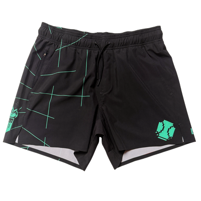 Enter the glitch zone with the Night Glitch Shorts — where retro gaming vibes meet modern athletic comfort. These shorts feature a sleek black base with neon gridlines and a mint flame crest, bringing a futuristic edge to your everyday style.