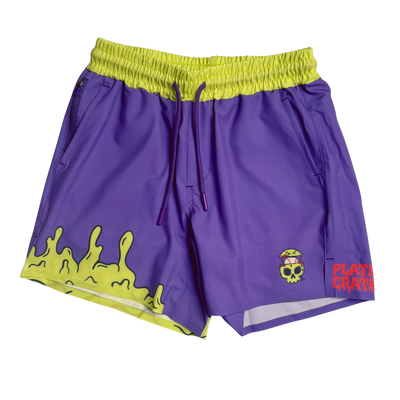 Rise from the grave in style with the Zombie Purple Shorts from Plate Crate’s October 2025 Monster Smash Collection. Featuring a bold slime design creeping up the legs and the signature Zombie Skull logo, these shorts bring spooky-season energy straight to your game.